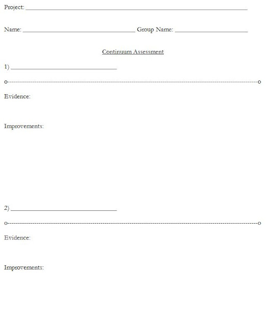 My foray into Project Based Learning necessitates a shift, and that shift was finally solidified through my activity with peers at the sessions. I scratched down a form of project assessment, and labeled it “Continuum Assessment”. I called it this for three reasons: