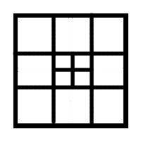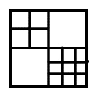 Because we can always add 3 squares to a formation by cutting one of its squares into 4, we can create 3 roots. Lets say we get a diagram with 14 squares, then 17 is achievable easily by splitting one more into 4–that adds 3 more and 14 + 3 is 17. Twenty is also simple, 23, 26, 29, etc. In fact, every third number would be possible. If we could find three “base cases” in a row we would be able to create any ‘n’ after them by adding successive divisions into 4. With a little playing, I found the first 3 consecutive successes are 15, 16, and 17: