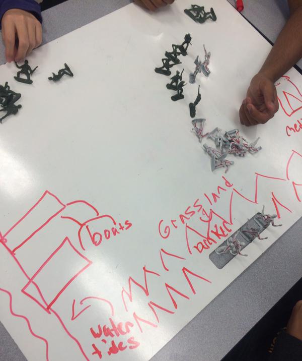 I used this .pdf file to take students through possible battles I wanted them to create. Each time, I asked students if they could create another scenario that represented the same battle or model it on the front board. The focus was on the conversations and animations. The slides include many examples, and I ended up skipping through once they became very proficient.